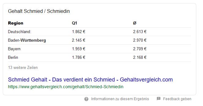 - Die Tabelle sollte entsprechend mit Markup gekennzeichnet sein, damit Google die Tabelle verstehen und gegebenenfalls Antworten daraus ableiten kann